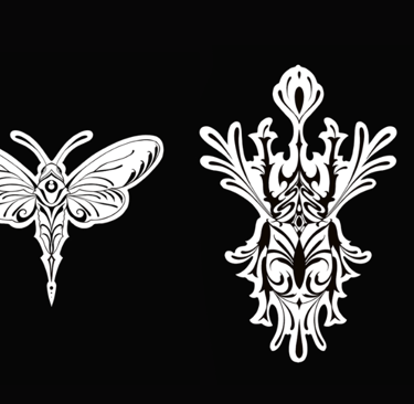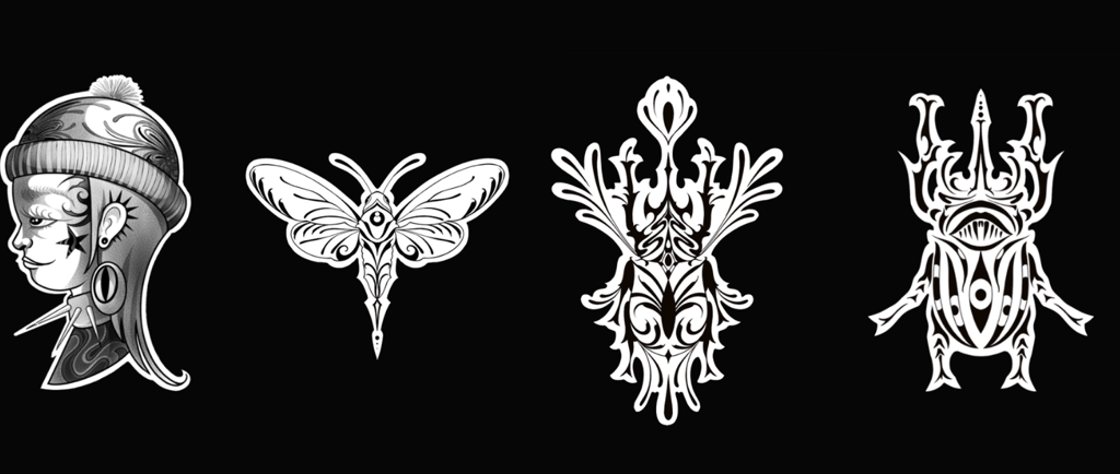 Técnica de sombreado y líneas gruesas que crean profundidad y movimiento en los diseños.